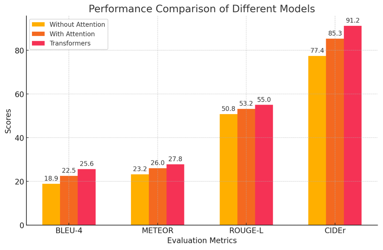 This research paper aims at reviewing the area of machine learning based caption generation with reference to computer vision and natural language processing. It includes a comparison of the error rates of CNNs, RNNs, and Transformer models in the process of generating timely and descriptive captions of images.